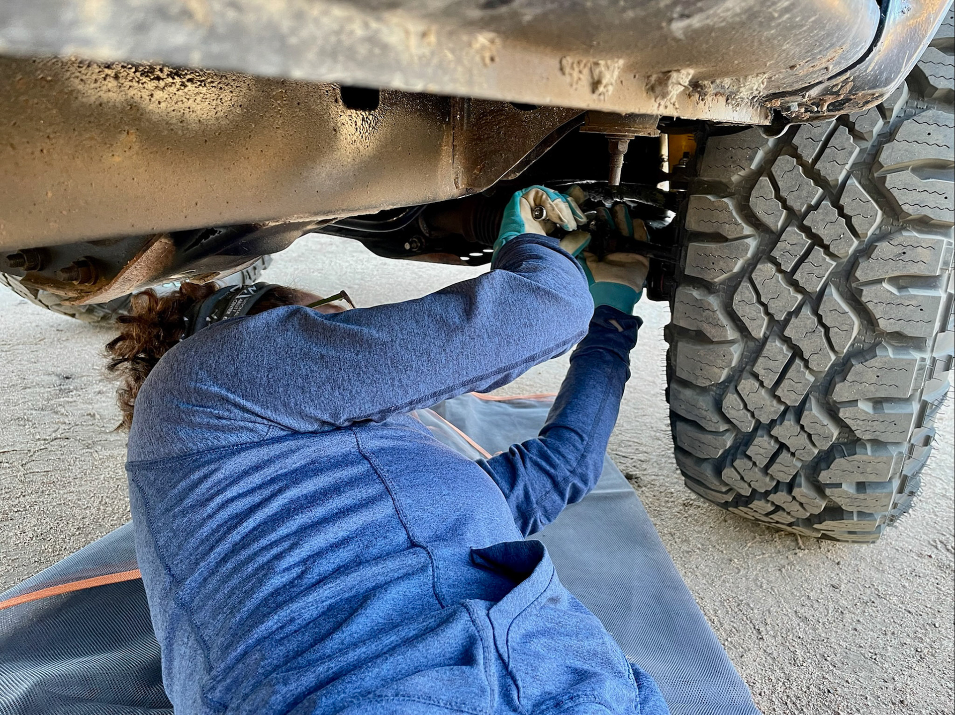 oh shit! tie rod bellows tore! must have happened after the alignment.